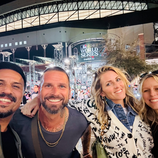 Ryan Roberts, a proud Texas native, traveled from Nashville to Phoenix, AZ, to experience the excitement of the 2024 World Series, Rangers vs. Diamondbacks, at Chase Field. With deep family ties in the DFW area, both Ryan and his wife, Kim, come from families of passionate Texas fans. Ryan's baseball career led him to time with the Texas Rangers organization in 2008, but it was his time with the Arizona Diamondbacks that truly marked a turning point in his journey. This trip to the desert became even more memorable as Ryan was joined by his wife and close friends, Gregg and Tara, in the Presidential Suite thanks to President Derrick Hall. There's always an exciting atmosphere when back in the desert, especially while cheering for their favorite team in such a thrilling environment.